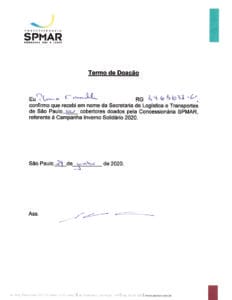 A Campanha Inverno Solidário realiza a sua 2ª doação! Desta vez, a doação foi realizada para a cidade de São Paulo, representada pela Secretaria de Logística e Transportes.